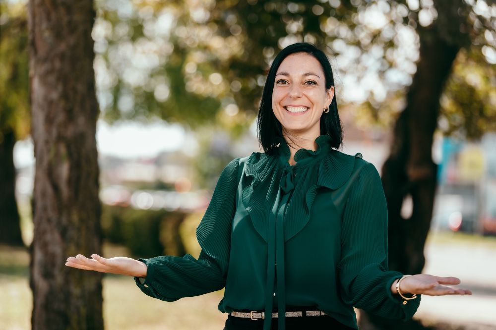 Alenka Medič že 12 let deluje na televizijskem področju, za kamerami, sedaj pa tudi v vlogi voditeljice pred kamero. Zase pravi, da je zelo družabna...