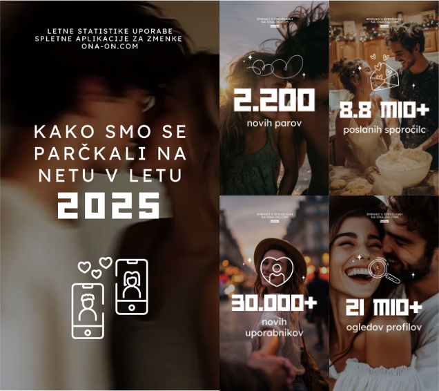 Najboljši del leta 2025? 4.400 uporabnikov se je iz ona-on.com izbrisalo z razlogom, da so spoznali partnerja – to pomeni kar 2.200 novih parov, ki so našli ljubezen prav na ona-on.com! Te številke so dokaz, da ljubezen ni nikoli daleč, če ji damo priložnost.